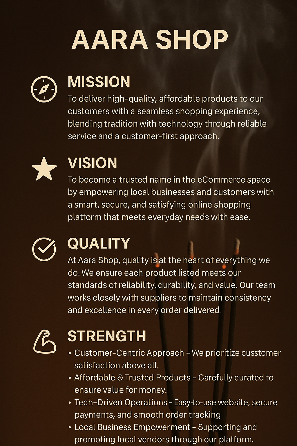 “Aara Shop was born from the idea that local products deserve a global stage. My mission is simple — to bridge trust, tradition, and technology, offering our customers quality they can feel and service they can count on.”